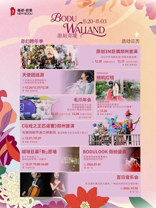 烏鎮(zhèn)戲劇節(jié)熱門劇目《馬戲之王匹諾曹》鄭州首演,帶你闖入夢幻童話世界;市民心愿將通過城垣巨幕“新”愿墻映上古老城墻,讓歷史見證美好憧憬;街拍盛典解鎖“巨星待遇”;格萊美級慢鏡頭定格高光瞬間;百日音樂會中西交融的旋律流淌街巷;竹藝美陳織就古今漫游動線,邀全城市民共赴跨越時(shí)空的迎新之旅。